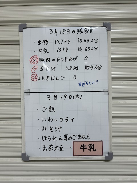 生徒たちはしっかり食べていて、いつもよりおかずの残食が少なかったです。
