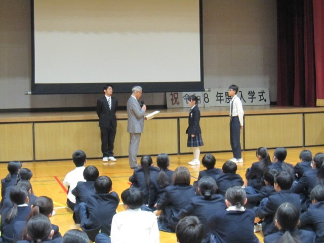 式では、はじめに1年生・2年生の代表生徒に修了証を手渡しました。代表生徒が堂々と受け取る姿に、各学年の歩みの確かさが感じられました。