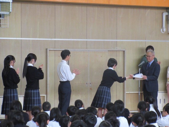 生徒会や専門委員は、学校生活を支える大切な役割を担っています。これからの活動を通して、自ら考え行動し、仲間と協力しながら学校全体をより良い方向へ導いてくれることを期待しています。