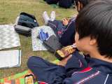 オリエンテーリングも終盤です。 全班揃いしだい、芝生でお昼ご飯になります。