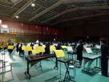 体育館の学年入れ替わり前の様子です。手分けして消毒もしてくれています。