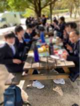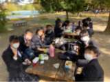 昼食場所に移動し、昼食を食べてます。