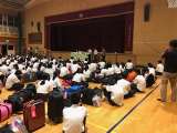 学校に到着しました! 解散式を行なっています。