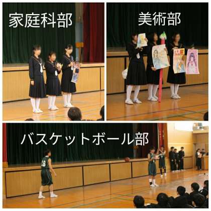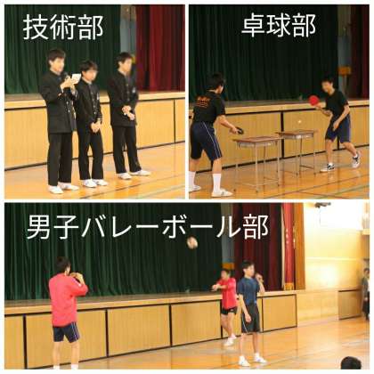 9日(火)の4時間目に、体育館にて1年生のためのクラブ紹介を、各クラブの代表生徒が行いました。