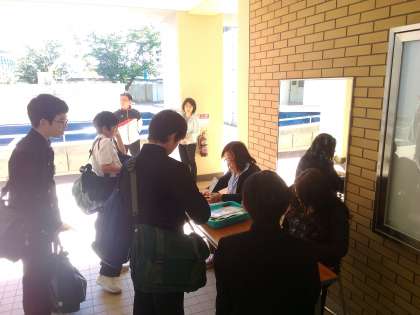 今週の火曜日、水曜日の朝には、学校元気アップの小川さん、宮野さんが漢検の受付をしてくださり、申し込みの生徒が列を作っていました。