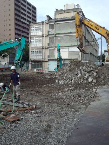 本日の作業は校舎基礎の小割り搬出と、北側進入路構築工事です。