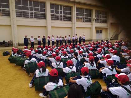 先程、健康観察、出発式を終えました。