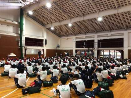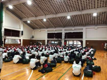 入所式 スローガン「前向きに 一致団結 キズナを深めよう 緑の生徒たち」