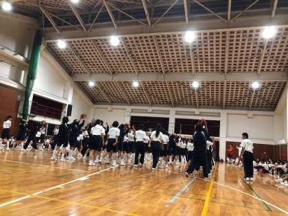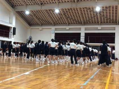 脚の間を通してボールを後ろへ送っていきます。次に、頭の上でボールを送ります。