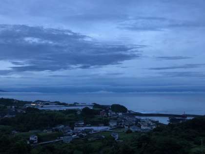 山際は、やうやう白くなっています。少し明るくなっており、雲が細くたなびいています。海と空の境界線がわかりません。
