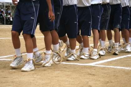 一年生学年種目は「ムカデ競争」です。