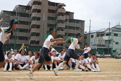 走っている人も応援しているクラスメートも、一生懸命。見ている観客も力が入ります。40人の生徒が一つのバトンを必死でつなぐ姿に感動しました。