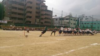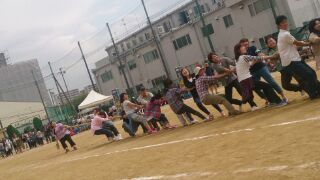 生徒チーム、保護者チームそれぞれ2チームに分けれ、2回対戦しました。生徒チームに勝つと意気込み、年甲斐もなく必死に綱を引き、2回とも保護者チームの勝利となりました。「大人げない」という声もありましたが、勝ちは勝ちです。