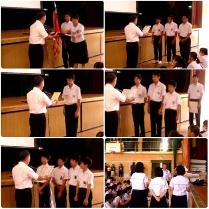 校長先生、諏訪先生のお話と賞状伝達が行われました。夏休み中、クラブや団体でたくさんの功績を修めてくれました。