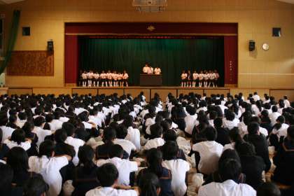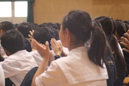 本日の6時間目に新たな生徒会執行部を決める生徒会選挙が行われました。まず体育館に集まり、執行部立候補者と応援演説者による演説が披露されます。全校生徒を前に堂々とした態度で臨む立候補者に、話を聞く生徒も真剣に耳を傾けていました。