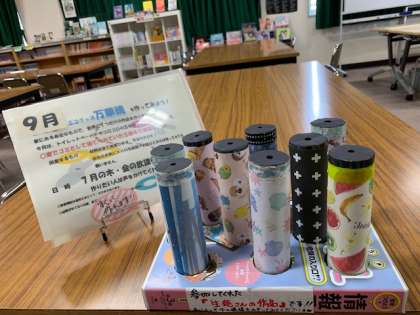 ペーパーの芯から出来る幻想的な世界にワーワー感動しながら作りました。文化祭で展示しますので手に取ってクルクル回してみてくださいね!