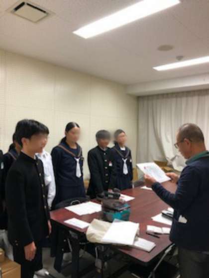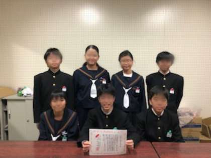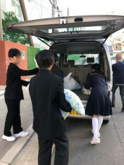 先日ご協力いただきました赤い羽根共同募金と昨年度よりご協力いただいておりますペットボトルキャップは生徒会が代表して鶴見区社会福祉協議会にお渡ししました。募金の総額は10,007円でした。