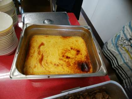 今回の給食では、鶏卵(液卵)・牛乳・クリーム・砂糖だけを材料とし、給食室のスチームコンベクションオーブンで蒸し焼きにしました。水と砂糖を褐色になるまで煮つめたカラメルソースも給食室で作り、本格的な味に近づけています。