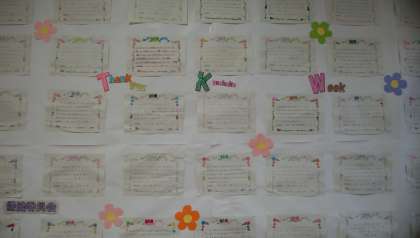 また、保健委員の生徒が書いた「感謝のメッセージ」を玄関ピロティに掲出しました。みなさん、見てくださいね。その一部を紹介しましょう。