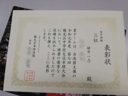 現チームになってからの初めての表彰で、生徒たちの日頃の頑張りが出たと思います。