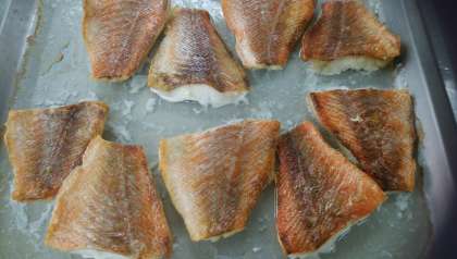 あかうおは名前の通り、赤い色をした魚の総称で、給食では北太平洋の深海にすむ「アラスカメヌケ」という魚を使っています。白身のあっさりとした味わいで、多くの生徒が「好きな魚」だそうです。(写真:中)