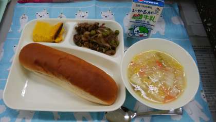 かぼちゃを入れることで、カロテンやビタミンC、食物繊維を摂取することができます。「おいしかったです!」「おかわり2回もしたよ!」という感想が聞かれました。