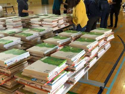 学校は休業ですが、新しい教科書で予習してください。