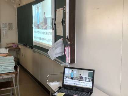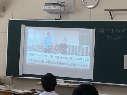 体育科がつくった、軽運動の動画を見て、教室で、軽運動をします。