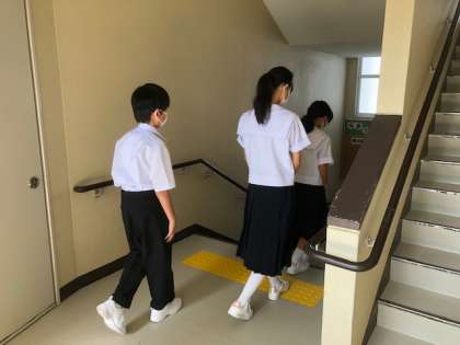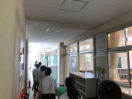 本日の1年生のプログラムのひとつは、校舎内見学です。