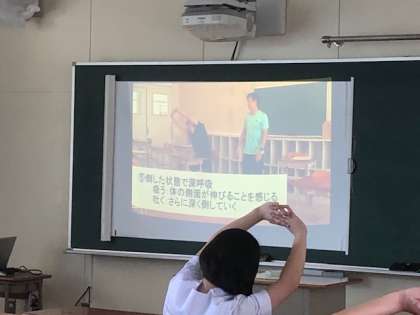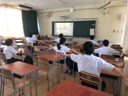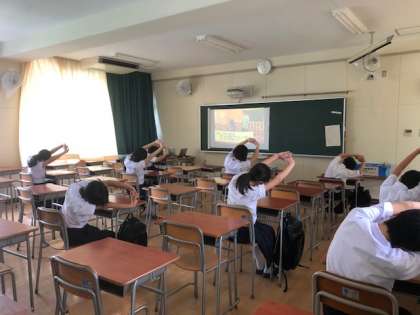 時間的に余裕のある学級は、保健体育科の軽運動を教室で行います。