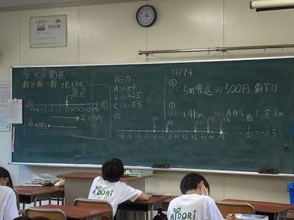 負の数まで、数の範囲を広げて、数の大小を考えています。