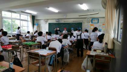 しかし、全員前向きの机配置のため、当番活動がしにくく、食べる時間を十分にとることが難しかったようです。