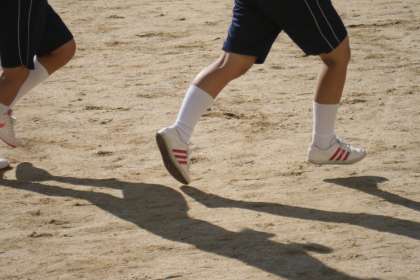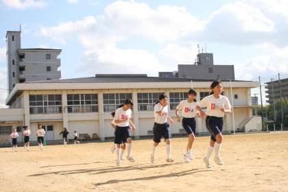 急に風が冷たくなってきました。しかし、生徒らは寒さに負けず半袖半ズボンでグランドを走り周っています。2年生女子は15分間走ののちに1000メートルのタイムを計ります。3年生男子は15分走ののちに、1500メートルのタイムを計ります。持久走が早く終わればサッカーも行います。
