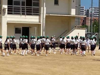 緑の帽子は、3年生です。