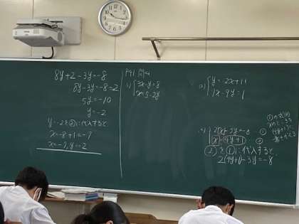 2年生の数学の授業です。 連立方程式の解法の学習です。