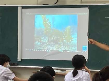アオミドロ、アオサ、ノリ、ワカメについて学習しています。