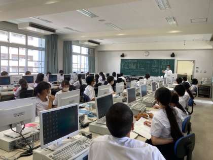 1年生 家庭科の授業 被服の単元です。 1年生 技術科 パソコン教室における授業です。