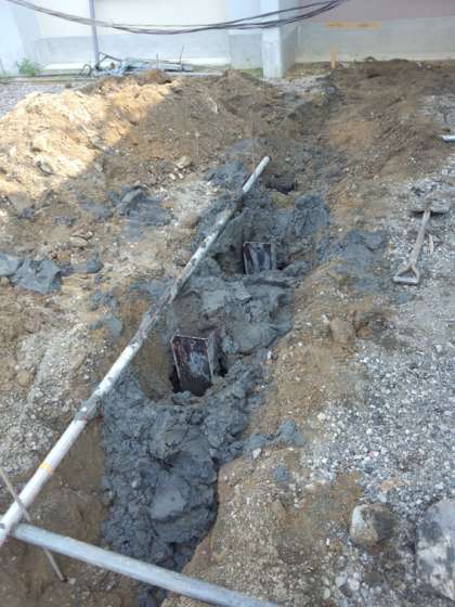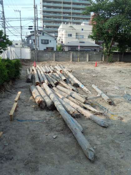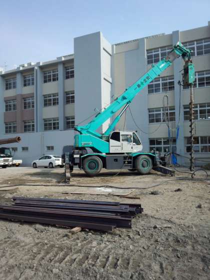 金曜から仮設の土留め用H型鋼の設置工事を行っています。