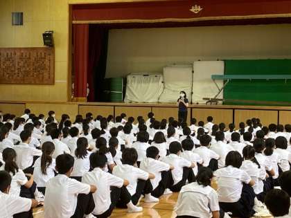 表彰の後、宇宙ステーションの話がありました。宇宙ステーションの話から、文化祭や体育大会に向けて取り組む意義を考えました。