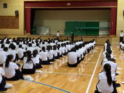 部活動の表彰を行いました。 3年生の最後の大会 頑張りました。