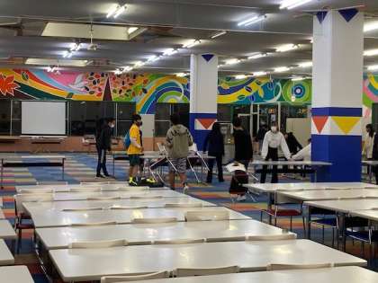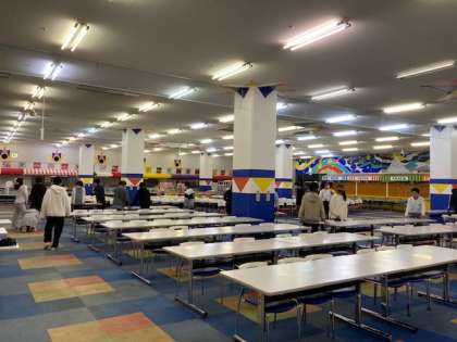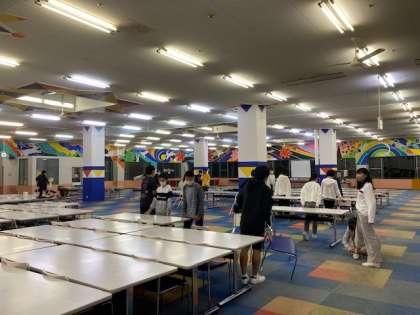 レクリエーション係が、会場を元に戻し、片付けをしています。