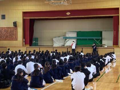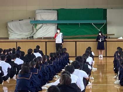 出産で産休に入る先生から、学年の生徒に挨拶がありました。