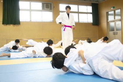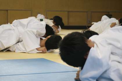柔道は、ただ勝ち負けを決めるだけのものではありません。柔道の授業が終わったあと、黙想を行います。目を閉じて、呼吸を整えるだけでなく、自分を見つめ、練習相手を想いやり、自分が柔道を行える状況について感謝します。嘉納治五郎が大切にした言葉が示すように、柔道を通して、人間性を向上していけるよう努めましょう。
