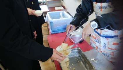 鶏卵に含まれるたんぱく質が熱で固まる性質をいかした料理は「茶碗蒸し」や「プリン」なども同じです。教室では1クラス分のバットから取り分けるために、きれいな形に盛り付けることはできないのですが、味は保証付き・・・みんな「おいしい!」と舌鼓を打っておかわりもしていました。
