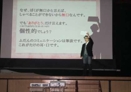 がとうのパワー〜」を開催し、「表現者たけ」こと河村武明さんに来校いただきました。