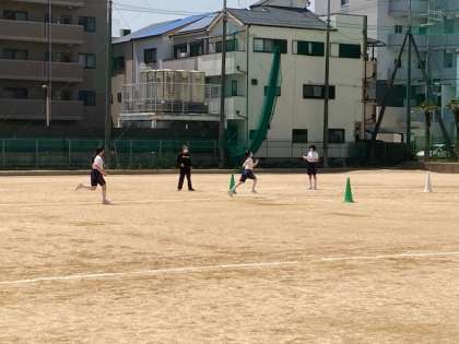 短距離走でタイムを測定しています。