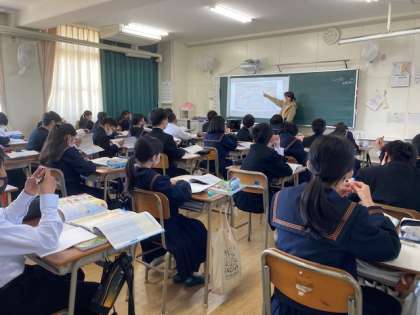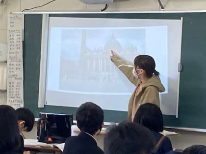 1年生 社会の授業です。 世界の地理を、グローバルな視点で考察しています。