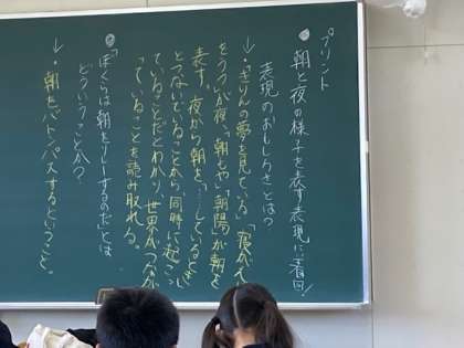 ? 1年生 国語の授業です。 朝と夜の様子を表す表現に注目します。