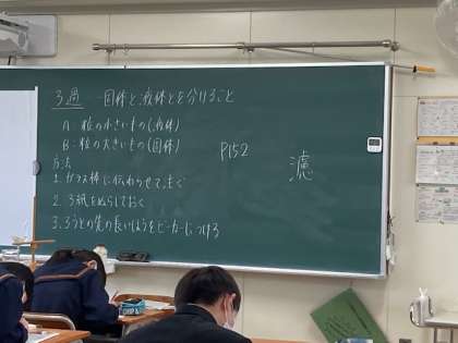 2年生 理科の授業です。 「固体と液体」の分離について学習しています。