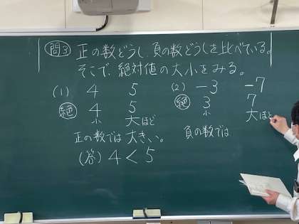内容は、「正の数・負の数の大小」です。